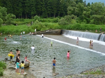 水遊びができる「せせらぎ」や「流れ」は、鐘木地区にあり、暑い時期になると多くの子ども連れで賑わいます。