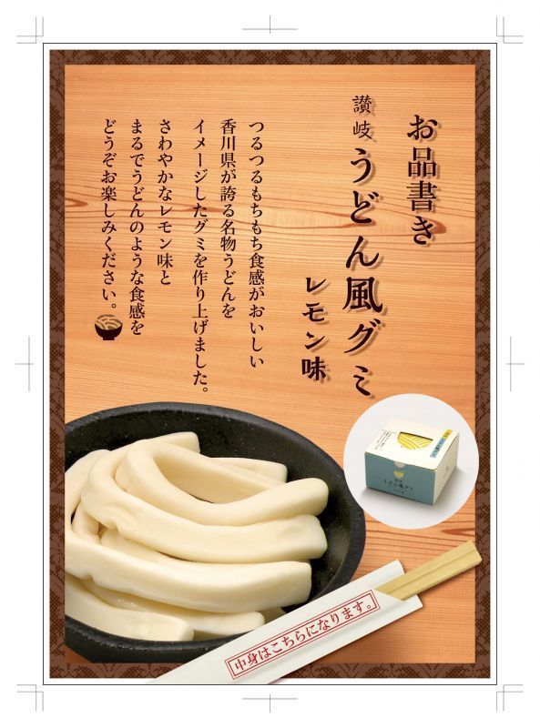 弾力があるグミが讃岐うどんの食感にも重なって、話題になっているお菓子です。