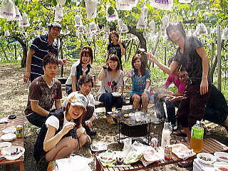 ぶどう狩りのオプションとして行うことができるぶどうの樹の下でのバーベキューは一味違う貴重な体験なのでおすすめですよ。葉を守るため、機材は備え付けのものを利用してくださいね。