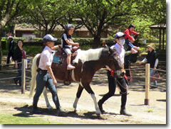 お子様が1歳くらいから4歳くらいまでなら引き馬コース。5歳以上なら是非ポニーへの乗馬をお試しください。