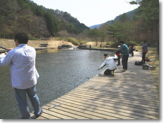・参考料金:上の池(初心者・子供向)1日¥1800、下の池(鯉・ワカサギ等の本釣)1日¥3100(駐車場代も含む)※釣竿・えさは要持参