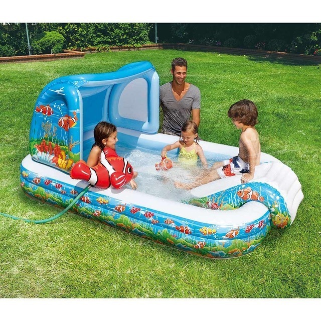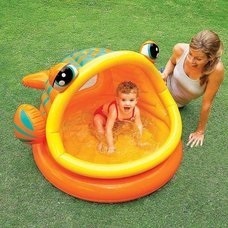 「レイジーフィッシュサンシェードプール」はユニークなおさかな型のサンシェードがついたベビープールです。