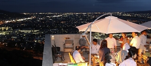 昼は青い海に緑の山々、夜は眼下に一面に広がる夜景と、時間によってさまざまな景色を楽しみながらバーベキューが出来ますよ。