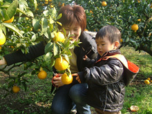 温州みかん狩りは10月1日から1月末まで営業。日当たりの良い所で育ったコクの有る甘さが特徴です。2月から6月にかけて甘夏みかん狩りも営業しています。