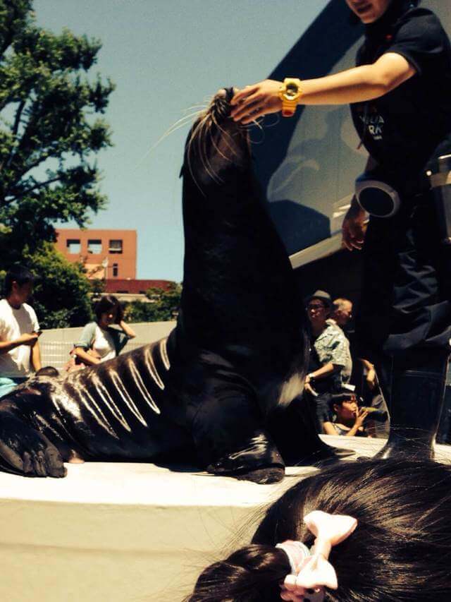 高くなった円形のステージで飼育員さんが説明をしながらいろいろなパフォーマンスを披露してくれます。