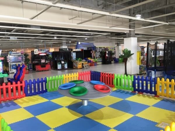 広島祇園店には、「ファンタジースキッズガーデン」というプレイリーダーと子どもひとりでも運動遊びができるコーナーや、同フロアの別エリアに「モーリーファンタジーf」という大人も楽しめるようなゲームが揃っているコーナーもあります。
