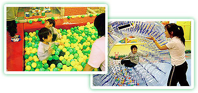 小さなお子様も楽しめるボールプールや女の子に大人気のままごとセット、ちょっと大きい子には空中トンネルや滑り台が人気です。