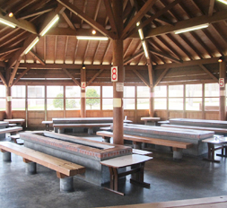 バーベキューはキャンプサイドやピクニック広場でできます。もし雨が降ってしまっても屋根付きのバーベキューコーナーがありますよ。