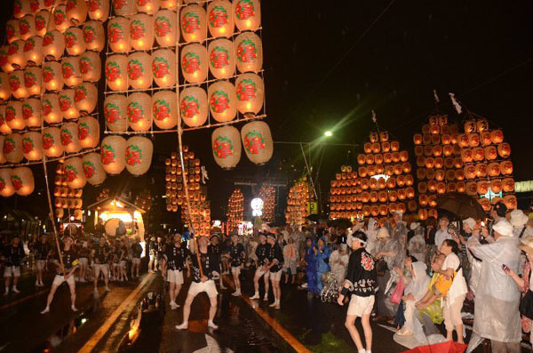 竿燈にはたくさんの提灯がついていて秋田の夜空を美しく飾るだけでなく、竿燈を手や肩、腰などを使って支え、妙技を競う姿は迫力があり圧巻です。