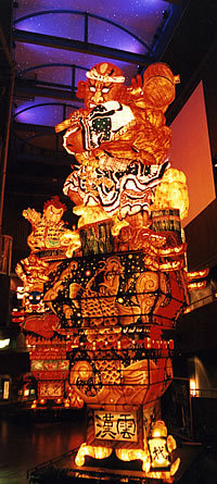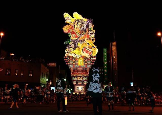 立佞武多祭りの見所は、高さが20メートル以上、重さが約19トンもある大きな山車で、ヤッテマレ!ヤッテマレ!と威勢のいい掛け声とともに街中を練り歩く姿は圧巻です。