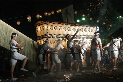大量の爆竹に火をつけながら船の曳きまわしをするんです。