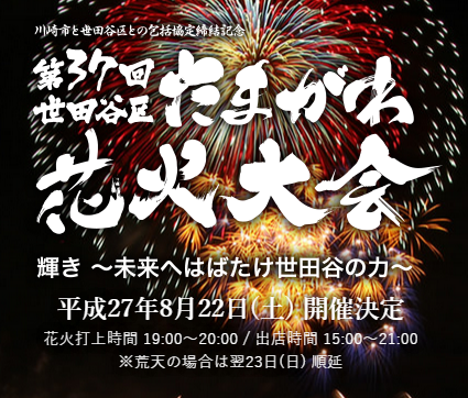 出典:www.tamagawa-hanabi.com世田谷区たまがわ花火大会は、今年で37回目。毎年、違う趣向で開催されており、区民だけではなく、多くの人の楽しみとなっています。