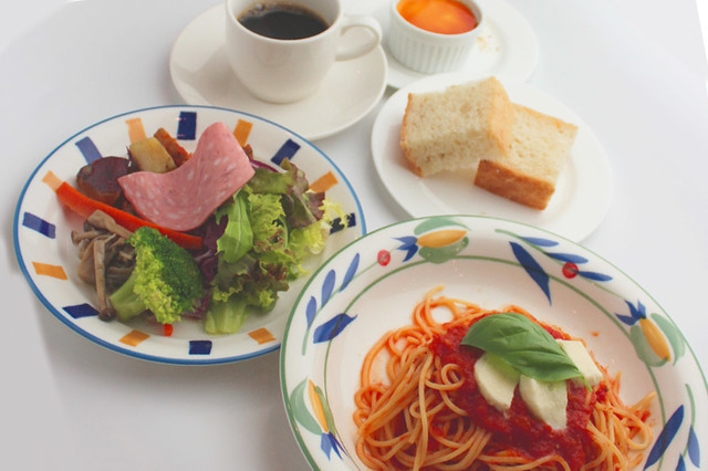 ランチタイムは、野菜の前菜と2種類から選べるパスタのサービスランチや、前菜・パスタ・コーヒー・デザートのランチ、前菜・パスタ・メイン料理のお肉・デザート・コーヒーのランチが揃います。
