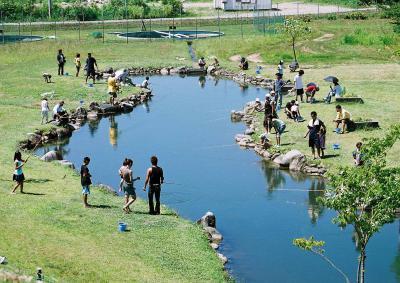 こちらでは竿・餌を用意しているので急に思いついても大丈夫。釣り堀は2種類あり、初心者には比較的簡単に釣れるという 「ニジマスの池」がおすすめ。