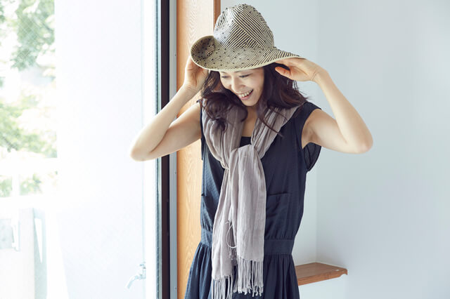 日焼け止めクリームと合わせてストールやネックカバーを使うとUV対策ができますよ。