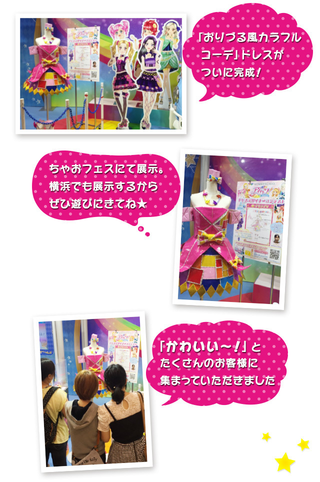 出典:thewonder.it「アイカツ!ドレスデザイナーコンテスト」では、グランプリを受賞したあかりんさん(受賞時:小学5年生)のドレス「おりづる風カラフルコーデ」をなんと実際に制作!