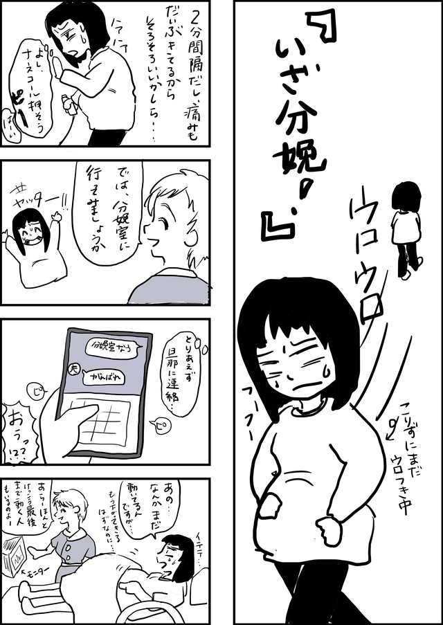 そのかいあってか、その1時間後ぐらいに陣痛も徐々に強まり2分間隔に。