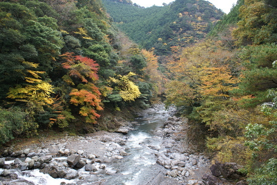 秋になるとその渓谷美に加え、カエデ、ケヤキ、ブナなどが色とりどりに明神峡を飾ります。例年、見頃の11月中旬になると、各地から紅葉狩り目当ての観光客の姿でにぎわいを見せるそうです。