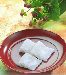 当時から福井県の複数の菓子屋が販売していますが、甘泉堂の羽二重餅は、2枚重ねでもちもちしています。
