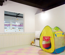 ママの施術中は無料で子どもを預かってくれる託児施設が2階にあり、キッズ専用のカットスペースも備えています。