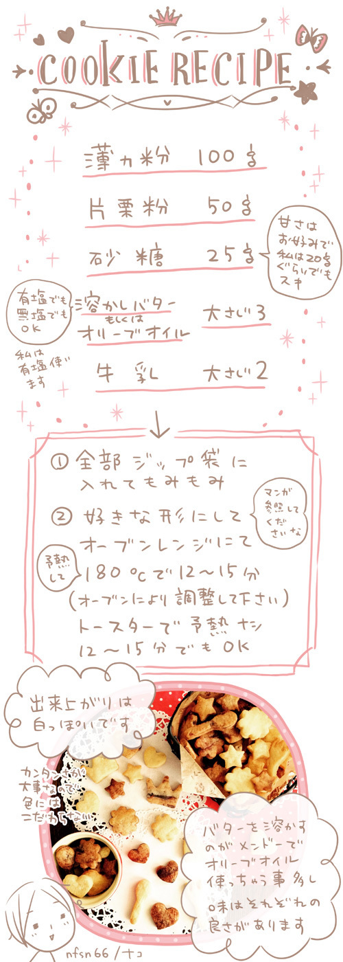 一番最後にナコ家クッキーのレシピ(というか分量)も掲載しましたので