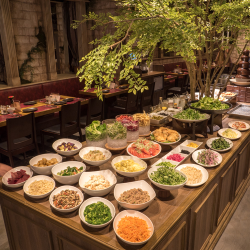 12時前後は大変込み合いますのでお昼を少しずらして入店するのがおすすめです。ディナータイムとなる17時以降はオーダービュッフェとなります。