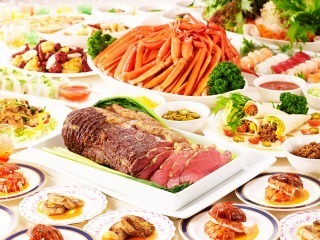人気はローストビーフやカニ!もちろん食べ放題です。天麩羅やお寿司はその場で作ってもらえる本格的なものです。