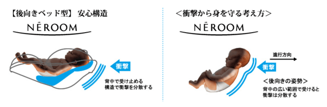 コンビのネルームは背中で衝撃を分散させる「後向き装着」!