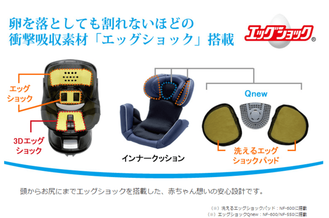 デリケートな赤ちゃんを守る衝撃吸収素材「エッグショック」搭載