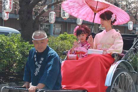 人力車に乗って記念撮影ができます