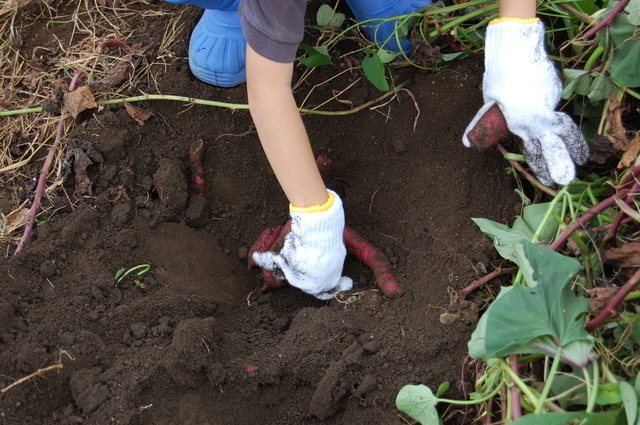 さつまいも掘りは10月の第一日曜から2週間で、1区画2000円で取り放題、自分の好きな道具を使って掘り出すことが出来ます。
