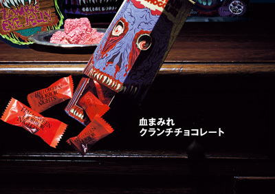 目玉のお菓子や頭に刃物が刺さっているように見えるかぶりものなど・・・背筋が凍ってしまうくらいのグッズが販売されています。