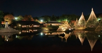 夜になっても庭園内をライトアップされた紅葉が彩り、まさに日本情緒を堪能できるひとときを過ごせます。