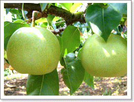 味果園では、8月~11月上旬まで梨狩りがおこなわれていて、もぎとった梨は食べ放題です。