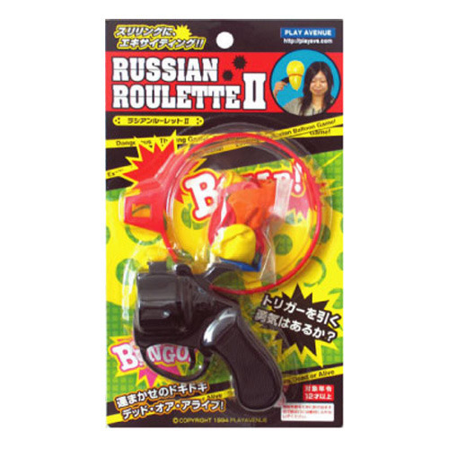 元祖パーティーゲームとして知られるロシアンルーレット。引き金を引くと6分の1の確率で風船が破裂します。