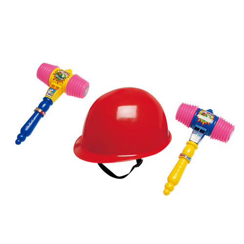 互いに向かい合ってジャンケンをして、勝った方はハンマーで相手をたたき、負けた方はヘルメットで防御します。