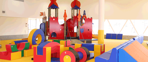 室内は、3ヶ所に分かれていて、赤ちゃんコーナーやブロック、おままごとなどで遊べるスペースと、食事が出来るスペース、そして仕掛け滑り台やエアキャッスルなど大型遊具が揃っているスペースです。