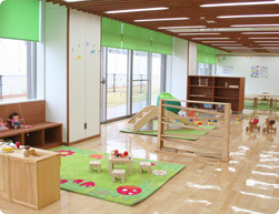 一時保育も可能となっています。屋外では、砂遊びや水遊びができて、晴れた日は思いっきり遊べます。