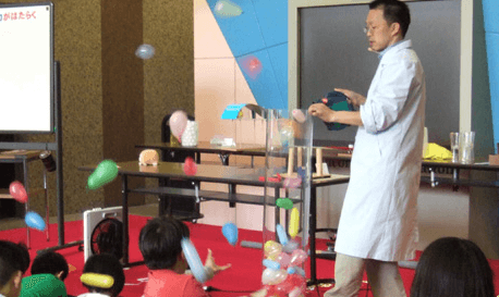 科学に親しむことができる「サイエンスホール」では、休日を中心にサイエンスショーを開催しています。空気の力を実感したり、音の聞こえ方を科学したり。