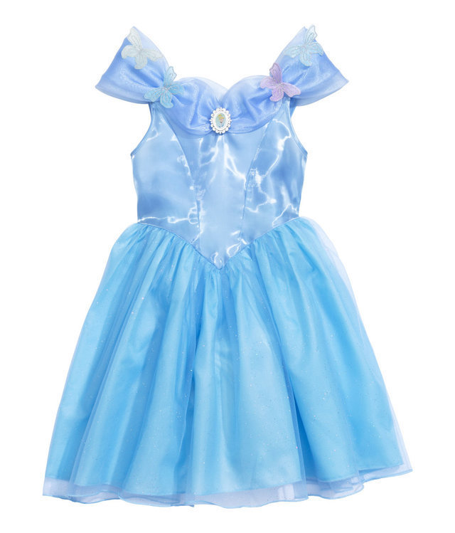ブルーのドレスは、ディズニーのプリンセスを思わせるすてきなタフタ素材でできています。2990円(税抜き)とお値段もお手ごろなのに、オーガンジーのフロントディテイルやシンデレラのチャームがすてき!