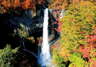 赤や黄色の紅葉に囲まれた秋の華厳の滝の姿は、思わず見とれてしまうほどの荘厳な美しさ。シャッターチャンスをお見逃しなく。