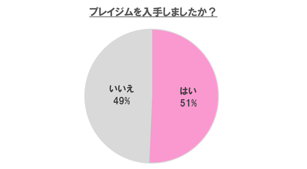 プレイジムを入手したか聞いてみると、半数のママパパが入手したと回答。