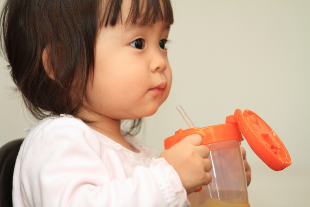 まずは、ストローをくわえさせる練習からしましょう。まずはストローから飲み物が出てくるということを教えてあげましょう。