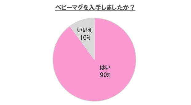 ベビーマグを入手したか聞いてみると、9割のママパパが入手したと回答。育児の必需品であるといえるでしょう。