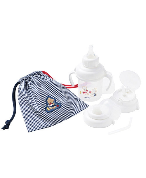 ●持ち手が付いていて、飲み口は乳首・スパウト・コップ・ストローなどさまざまなタイプがあり、それらを保護する蓋も付いている