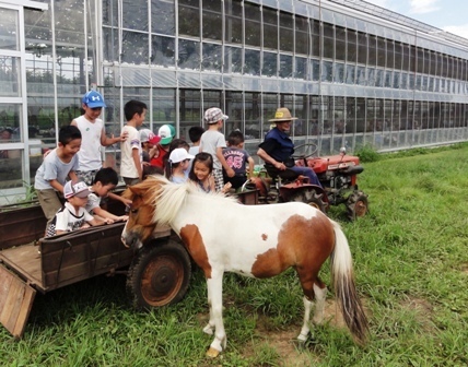 他に、子ども達が大好きなヤギやポニーもいて、えさやり体験もできちゃいますよ。