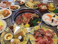 焼肉を中心に、お寿司やサラダ、焼きそば、チャーハン、デザートなどがずらっと並んだ店内は、入るだけで子どもたちのテンションが上がること間違いなし!