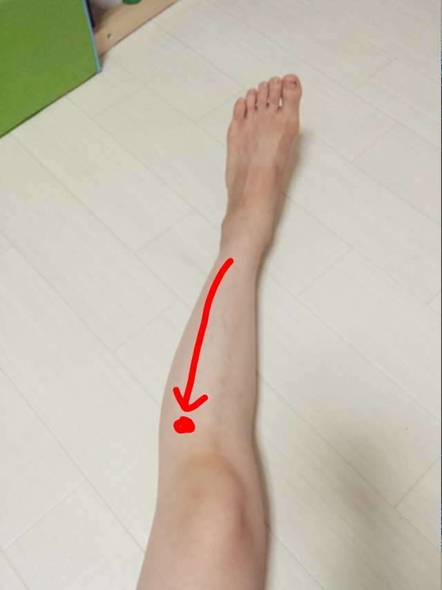 場所は、膝の外側から指4本分下です。(写真の●の場所)