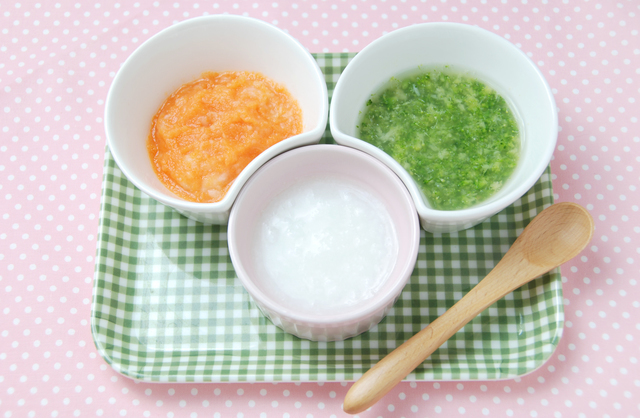 主食のおかゆは、たくさん作ってミキサーで食べやすい状態にし、冷凍保存することができます。1回分ずつの量に小分けしておけば、食べる時に解凍するだけで準備が簡単です。ご飯を使うことができるので、赤ちゃん用におかゆを作らなくても、大人のご飯を取り分けてつくることができますよ。