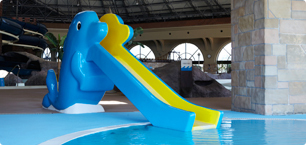 出典:www.patio.or.jp窓際の一番明るい場所にあり外の景色を見ながら入る事が出来る、子ども用のプールです。目印はこの水色の可愛いイルカのスライダー。